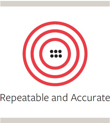雖然準確性很重要,除非它是可重複的,否則價值隨著零件/系統設計從研發階段進入生產階段將迅速減少。在選擇機器系統時,重複性通常成為主要的影響因素。