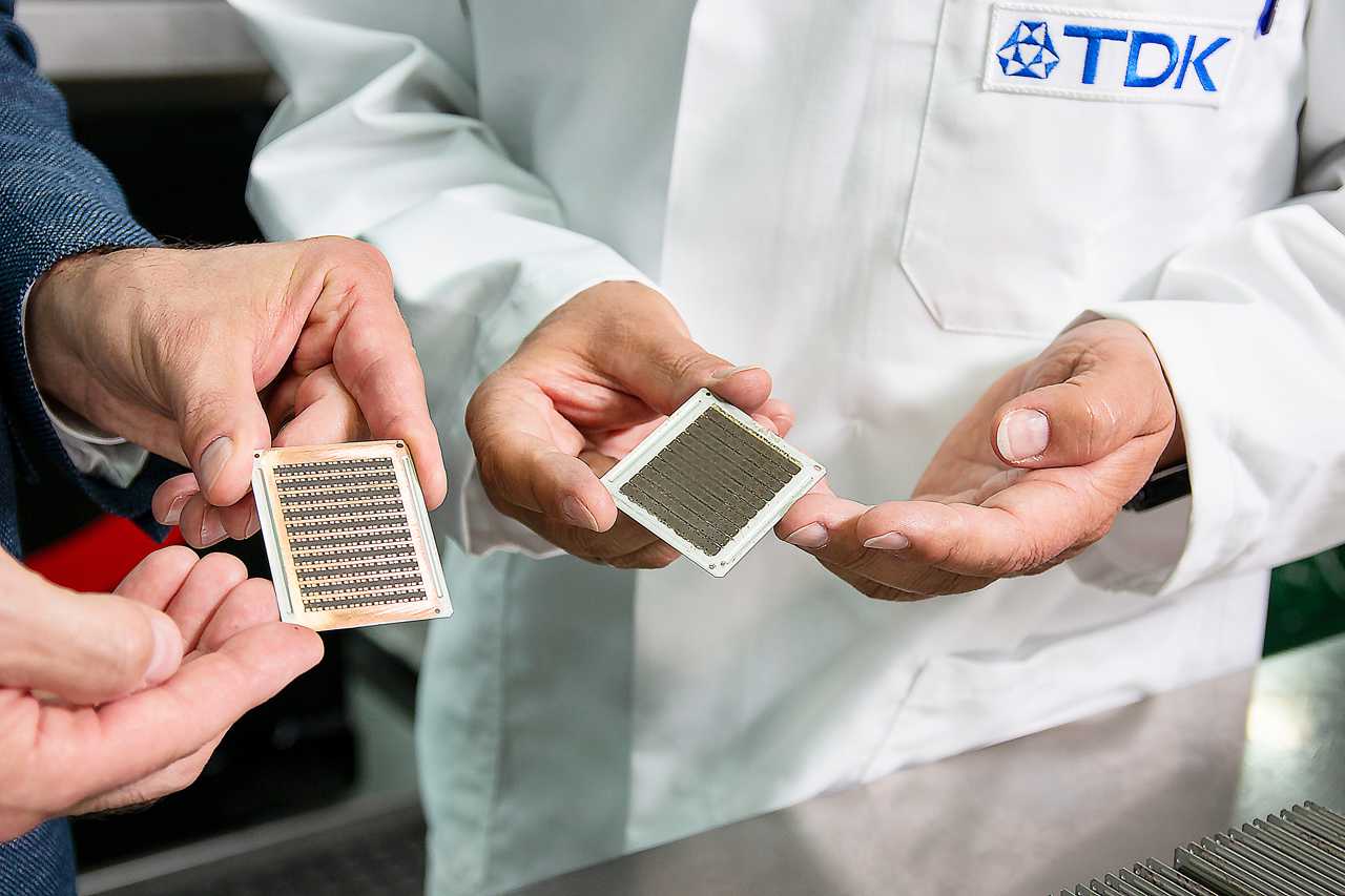 TDK 電子在“初始線路”專案下,正在開發用於感測器電壓調節的微電感器。海頓海姆工廠特別關注因為輔助駕駛系統和自動駕駛的進一步發展而迅速增加的汽車感測器市場需求。感測器的心臟用的是最先進工藝製造的微型銅線圈。鐵芯插入含鐵氧體的化合物中,並在下一個工序中密封。