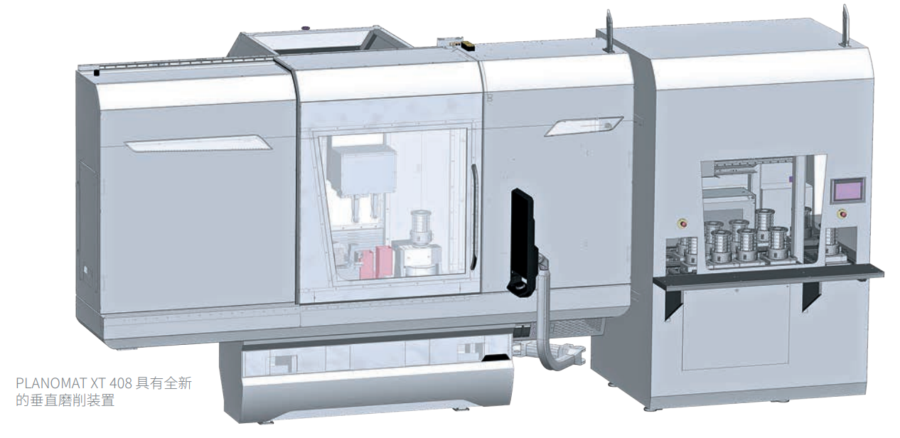 更均勻的測量分佈、更高的進給量、更短的迴圈時間以及更低的研磨主軸皮帶負荷:PLANOMAT XT 408 採用新的垂直研磨裝置,在加工液壓電機定子時具有諸多優勢。快速夾持裝置也使研磨臂的更換過程變得輕鬆和快捷。通過更換主軸臂、砂輪、修整滾輪和工件夾緊裝置,轉換到其他定子型號所需的時間總共約為 30 分鐘。 由此得到的結果是更高的精度和生產效率。