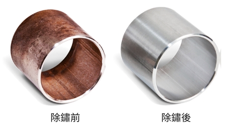 去除紅鏽有多種方法,可分為機械和化學方法。機械去除紅鏽,例如使用無機酸酸洗(pickling)或電解拋光(electropolishing),會產生金屬磨損和氣溶膠,因此需要對工具機進行密封處理,這可能會嚴重影響生產運營。此外,機械去除方法會破壞不銹鋼的被動保護層,導致紅鏽很快重新出現。