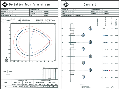 軸測量的另外一個特點是可用於凸輪軸檢測。這種情況下是將凸輪的名義幾何數據與實際測量結果,即凸輪的實​​際幾何數據進行比較(見圖4a/b)。用戶可以選擇著重於單個凸輪測量任務,或所有凸輪顯示在一起,以便獲得整個工件的概貌。當然,同時可以評估凸輪形狀以及不同凸輪高點之間的相互位置。