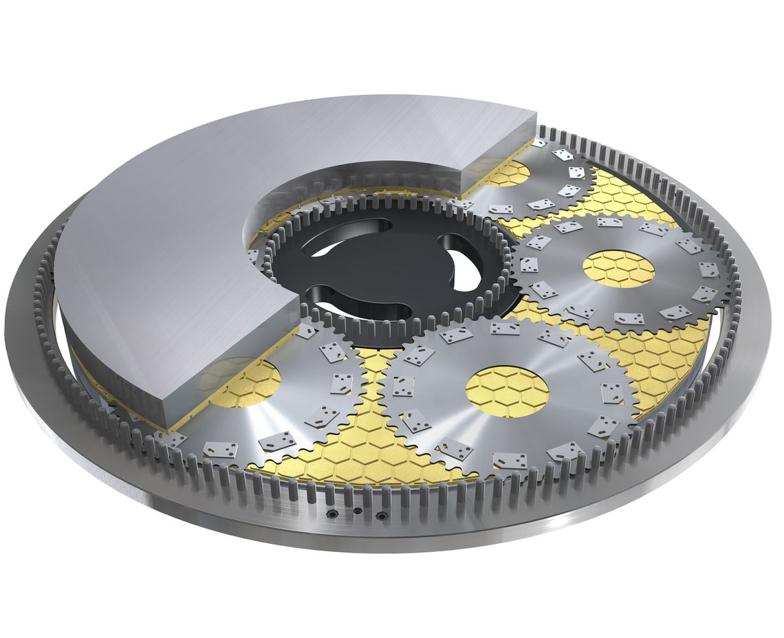 當工件的兩面均需具有平面平行性時,也可以採用精密磨削,但其精度比雙端面磨床要高。工件放置在外徑有齒的托架上。當托架以軌道方式在固定的外銷環上移動時,內銷環對托架進行旋轉。加工發生在兩個旋轉的砂輪之間。最優的加工壓力由安裝在振盪飛擺上的上砂輪提供。精密磨削的主要特點是可以同時加工固定數量的零件,也可以分批加工。