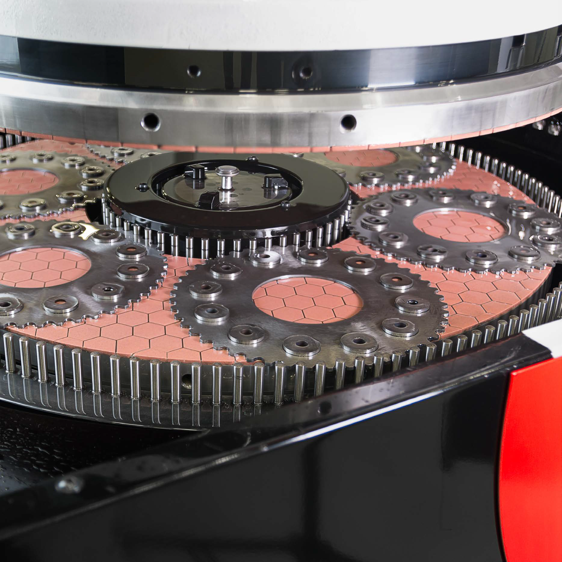 Spiro的圓盤直徑為720毫米。最大壓力為1,800 daN,工件直徑為5至200毫米,高度為0.6至80毫米。這台機器可以生產出高精度的表面,且具有很高的材料移除率。它的優勢之一是在批量生產中具有很高的成本效益,單位成本很低。