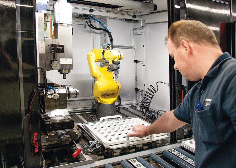 Supfina LCM TS 和 HIRSCHMANN 零件同樣具有極高的耐用性,該系統自 2016 年起一直維持三班制運行,過程中既沒有故障,也不曾中斷。由於六軸機器人的裝載靈活度和其整合自動化系統,每一次批量更改的設置時間不超過 15 分鐘。