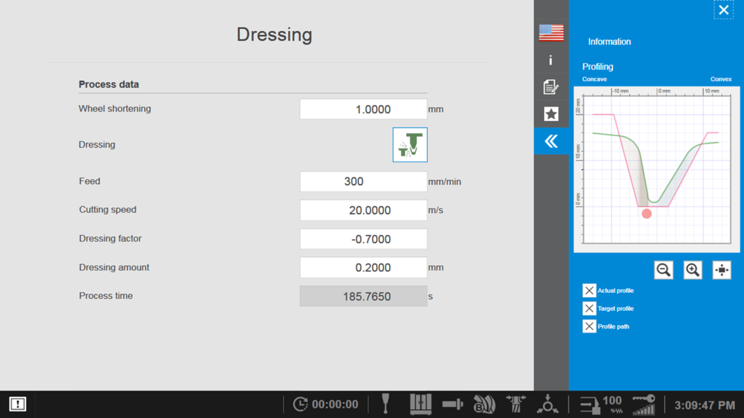 - 新砂輪修形中,砂輪形狀一旦達標,修整循環會立刻停止。
