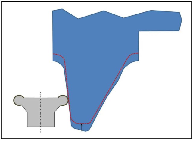 這樣外輪廓砂輪去除量要比內輪廓去除量小很多。